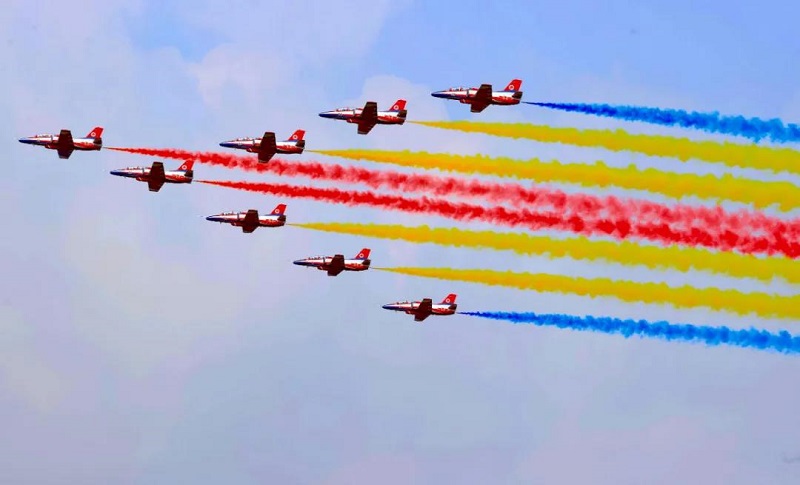 开幕式后,领导和嘉宾观看了飞行表演,参观了航展展馆。