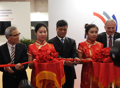 国际宇航联主席樋口清司、中科学副院长阴和俊、航天科技集团公司董事长许达哲、航天科工集团公司董事长高红卫等出席开馆剪彩仪式并一同参观了展览。