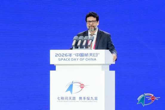 单忠德在致辞中表示,2016年习近平总书记在首个“中国航天日”到来之际,发出“探索浩瀚宇宙,发展航天事业,建设航天强国,是我们不懈追求的航天梦”的伟大号召。中国航天人牢记殷殷嘱托,奋力探索攻坚,勇攀科技高峰,谱写中国航天事业新篇章。党的二十届四中全会作出加快建设航天强国的战略部署。新时代新征程,国家航天局坚持以习近平新时代中国特色社会主义思想为指导,完整准确全面贯彻新发展理念,夯实航天发展技术底座,加力实施航天强国工程任务;构建航天现代化产业体系,加快打造新兴支柱产业;坚持既“放得活”又“管得好”,加快构建完善航天治理体系;践行四大全球倡议,推动世界航天事业发展;弘扬航天精神文化,凝聚建设航天强国磅礴力量;开放创新、开放合作、开放共赢,加快推动航天事业发展,携手共建人类命运共同体。