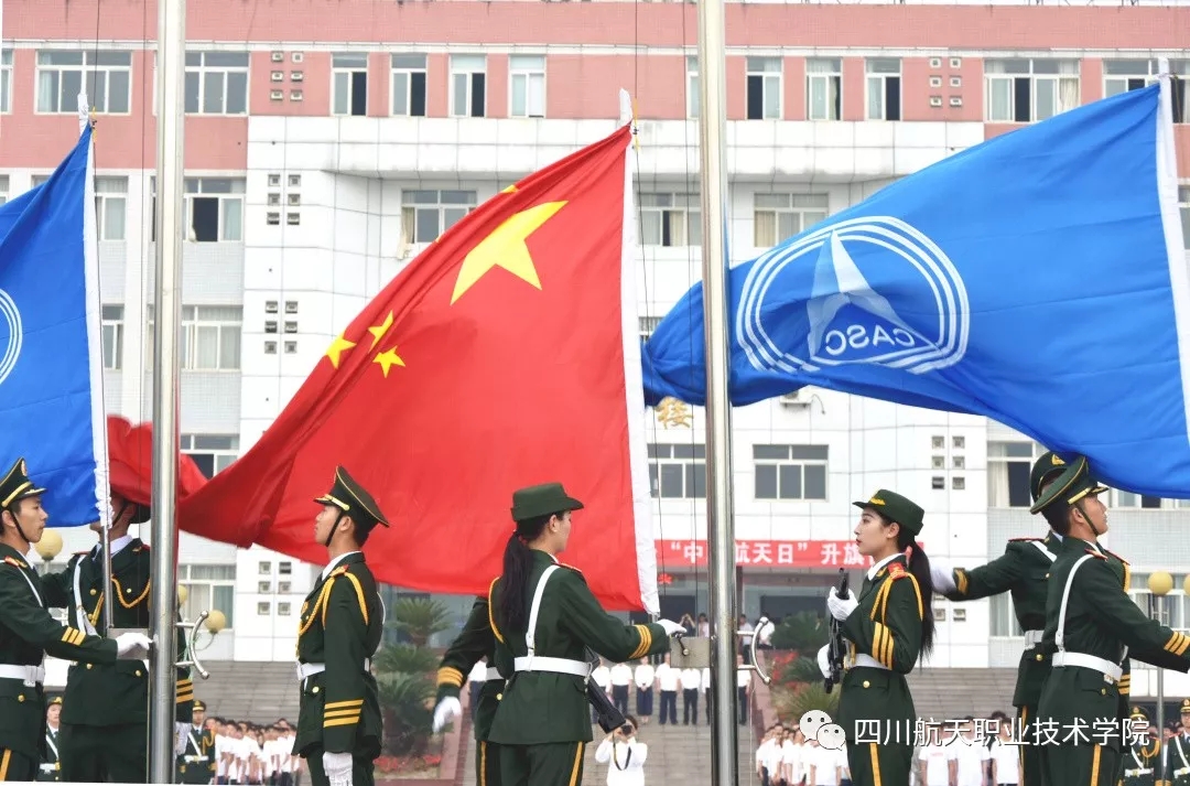 在第四个中国航天日来临之际,学院组织全校2000余名师生,在广汉校区飞天广场举行了升旗仪式。