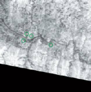 图7 研究区CBERS-02 CCD 植被指数图(2005年6月6日)。图中标示部位为地面数据测试点。