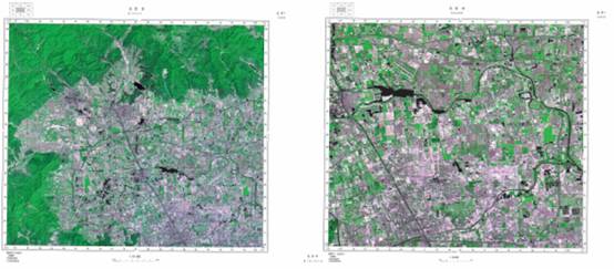 图8 北京地区不同比例尺标准影像分幅图制作(左图1:10万;右图1:5万)