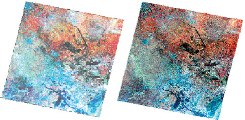 图9 CBERS-02 CCD图像辐射校正前后影像对比